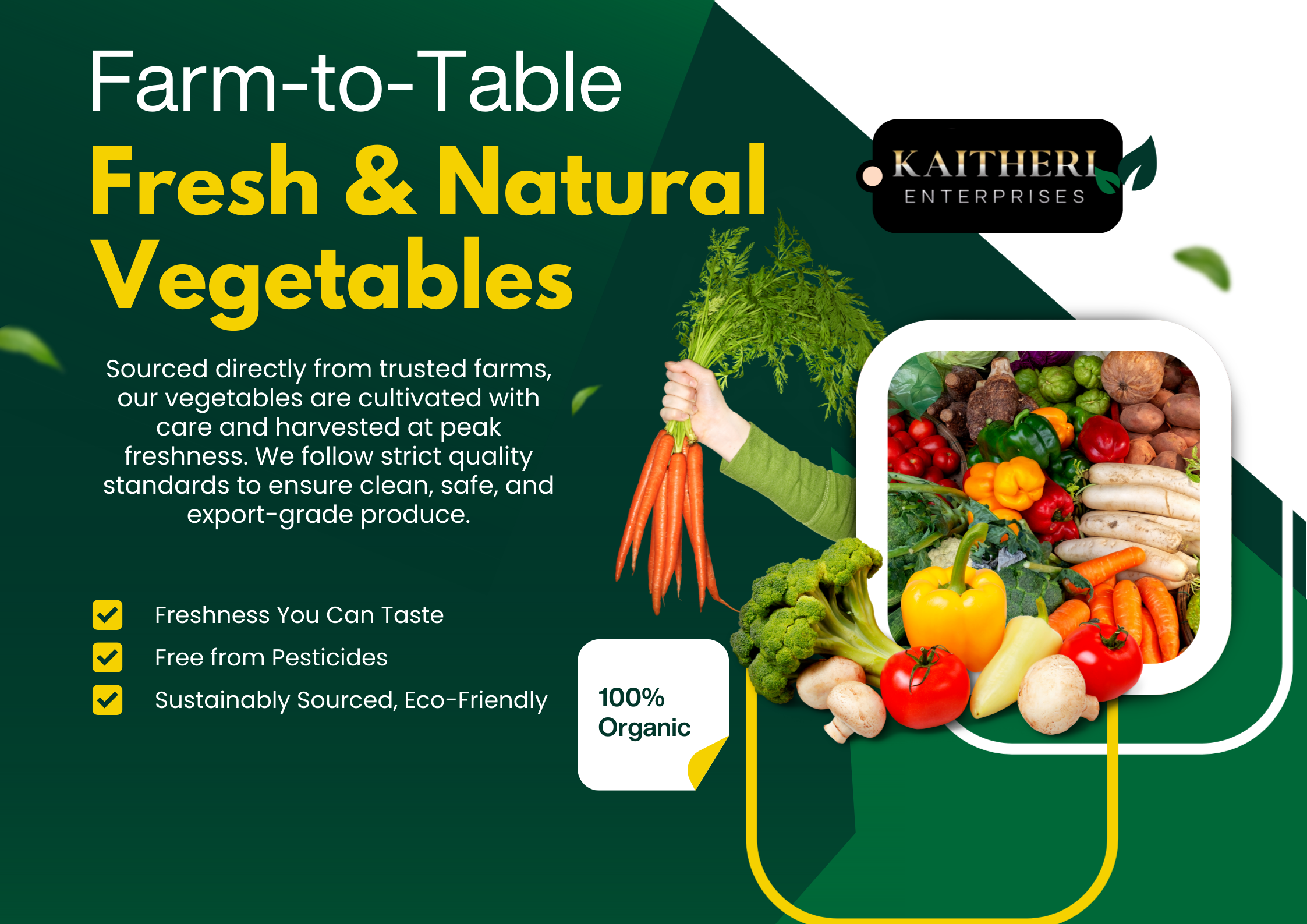 Sourced directly from trusted farms, our vegetables are cultivated with care and harvested at peak freshness. We follow strict quality standards to ensure clean, safe, and export-grade produce.